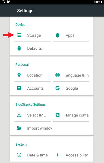 Now click Storage.