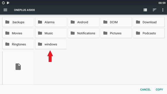 Now you're in the root folder again for your internal storage. Proceed by clicking Windows.